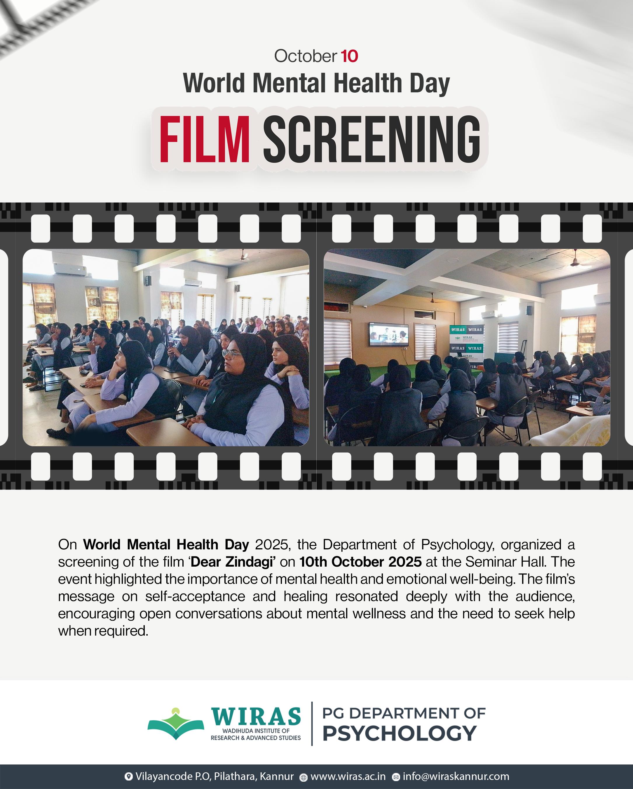 Film buffs in Wadihuda Womens Academe organized a film festival in which the organizers screened two Palestinian films ‘100 Balfour Road’ and ‘5 Broken Cameras’. The event saw a decent turnout of academe’s film appreciators to watch the critically acclaimed films. Before each the film screening, there was introduction on the films. Principal Dr.Mishab Irikkur talked in lengths about the films. The session was a learning opportunity for the students.