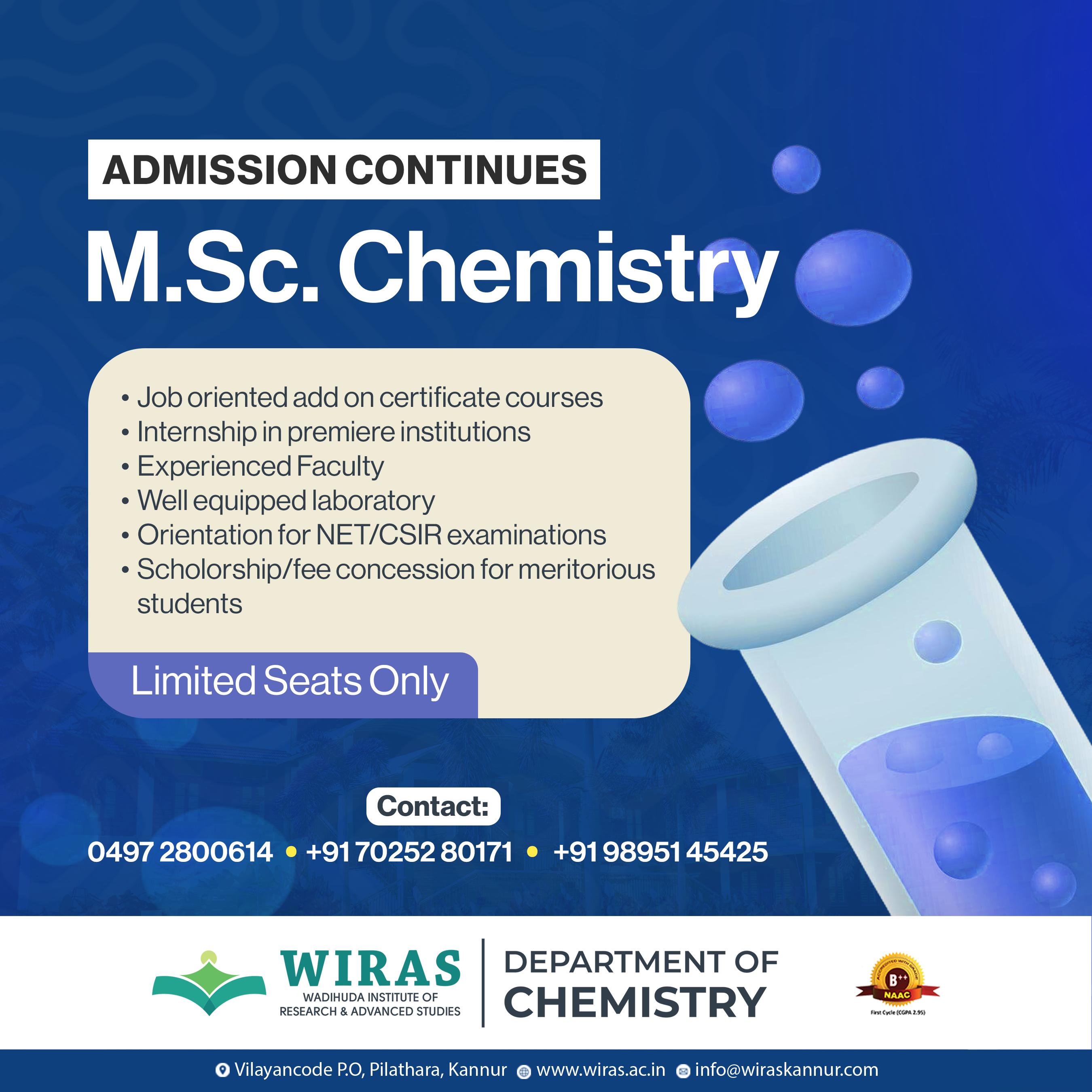 Admission Continues for M.Sc. Chemistry at WIRAS...