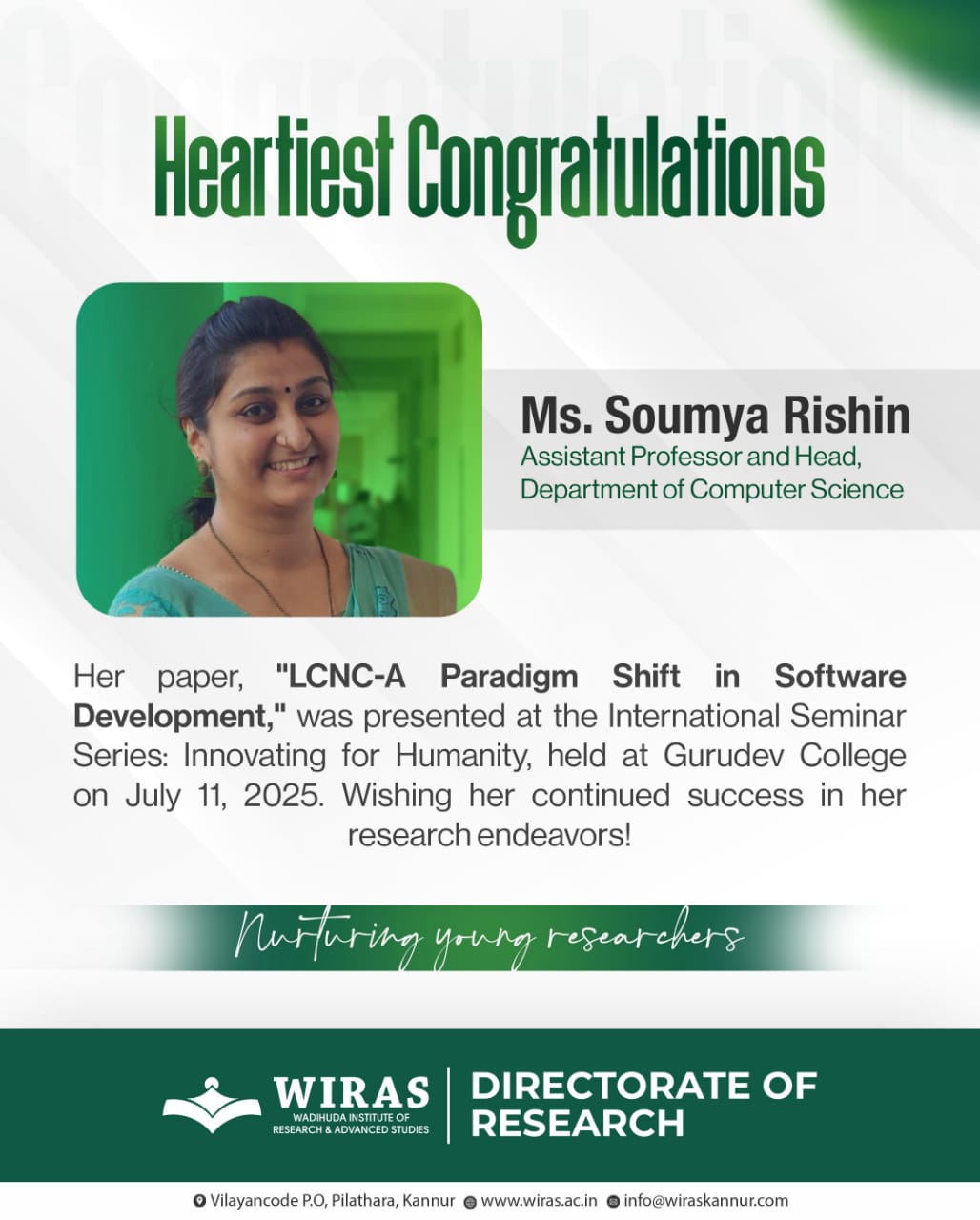 Ms. Soumya Rishin Presents Research at International Seminar...