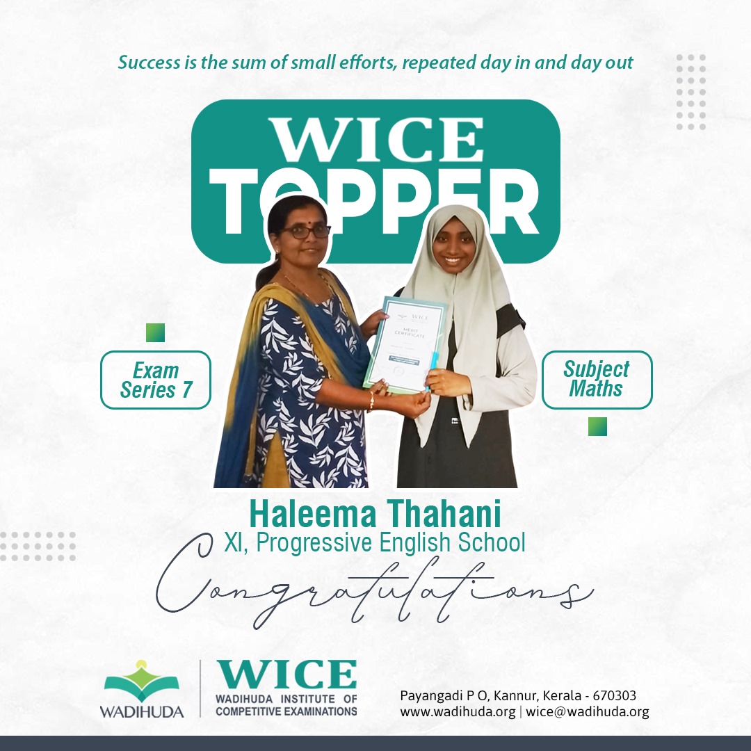 Haleema Thahani Emerges as WICE Topper in Exam Series 7...